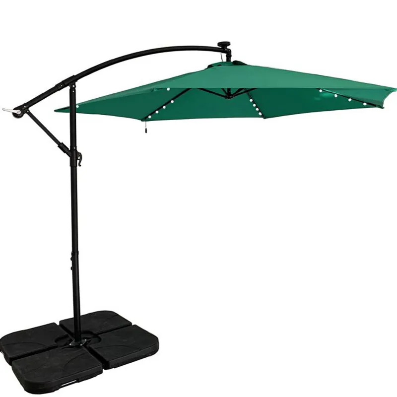 Umbrela solară Cantilever este o alegere de umbrelă de soare foarte ecologică. Este echipat cu o baterie solară reîncărcabilă care poate fi încărcată de la sine atunci când soarele este suficient și poate fi folosită pentru banda luminoasă pe timp de noapte. Această tehnologie nu costă bani și nu irosește energie naturală și este foarte demnă de promovată. O astfel de umbrelă excelentă este fabricată în China, cu o structură de oțel, care are caracteristici sigure și stabile, este non-toxică și este foarte potrivită pentru utilizare în aer liber. Folosirea verdelui ca umbrelă de soare întruchipează pe deplin protecția mediului.