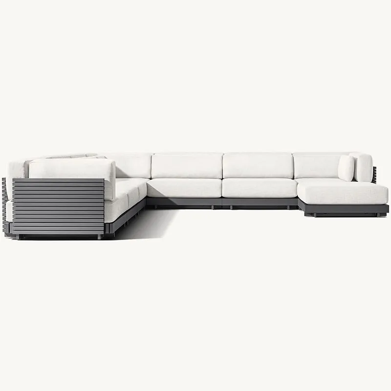 Canapeaua noastră de exterior L este construită pentru a rezista, având un cadru robust din aluminiu care oferă atât rezistență, cât și eleganță. Aluminiul, cunoscut pentru proprietățile sale rezistente la rugină, asigură că mobilierul tău de exterior rezistă la intemperii fără a se deteriora. Acest material nu este doar durabil, ci și ușor, făcându-l ușor de mutat și rearanjat după cum este necesar. Finisajul elegant al cadrului de aluminiu adaugă o notă contemporană, sporind atractivitatea estetică a spațiului tău exterior.